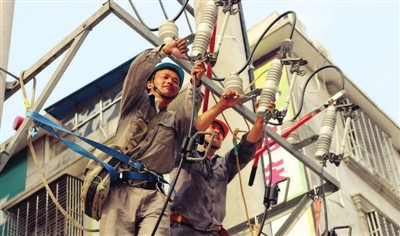8月2日凌晨,通城县供电公司银山电业施工人员为10千伏城北2#线步行街变压器增容。增容后,沿线337户居民将摆脱低电压困扰。 通讯员 桂丽娟 摄