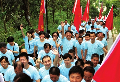8日,咸安区党员干部和城区社区居民1500多人参加“全民健身日”登山活动,旨在全民健身,增强体质。 通讯员 吴涛 摄