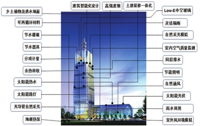 该项目以国家绿色建筑二星级运行阶段评价标识为目标,实施的绿色建筑技术策略包含有乡土植物复层绿化、透水地面、外围护结构保温节能、节能灯具及控制、太阳能+地源热泵空调系统、太阳能光伏与建筑一体化、减压限流、节水卫生器具、节水喷灌、高强度钢筋、土建预装修一体化、灵活隔断、分类分项计量与收费、智能化设计等技术。这些技术的应用,在大大提高建筑品质和环境品质的同时,减少了土地资源、能源资源、水资源以及材料资源的消耗,具有非常良好的生态、节能、环保效益。
