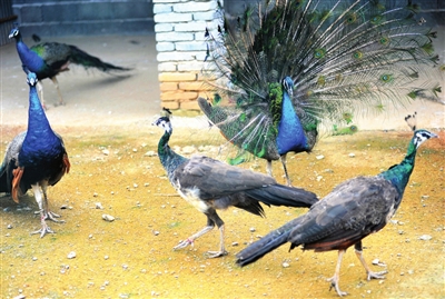 8月7日,在崇阳县石城镇光辉孔雀养殖场,美丽的蓝孔雀开屏,令人惊艳。该养殖场实行产供销一体,目前蓝孔雀存栏数量达600余只,经济效益可观。