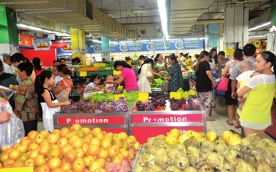 【现场】 8月6日,天气虽是炎热,但市民的消费热情不减,县城各大商家的多种大幅减利让惠促销活动,使得超市内客流如织、人头攒动,各种雪糕、冷饮、新鲜蔬果等商品特别畅销,一派热闹景象。