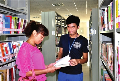 “请问您想看什么类型的书籍?我来帮您找。”8月6日上午,赤壁市图书馆内,赤壁大学生公益联盟成员鲍唯见一读者在书架前徘徊,便主动为其提供帮助,并快速、准确地为她找到了商业经营类型的书籍。