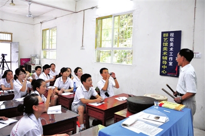 图为8月5日,赤壁群艺馆表演老师游哲茂在为学生们讲表演课。