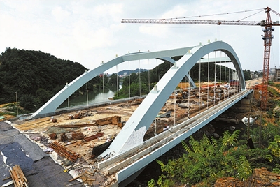 15日,市中心城区金桂路西段延伸线的重要工程项目——金桂彩虹大桥,正在进行桥面清场,为铺设水稳层等后期配套辅助工程做准备。