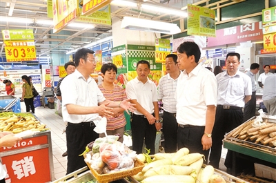 ——检验监测。农产品质量安全监测是农产品质量管理中非常关键的环节,是保证农产品质量安全的重要手段。目前,该县投资300万元的农产品质量安全监督检验站已投入运营。县农业局在城北农贸市场积极开展上市蔬菜农药残留检测工作。并指导各大型超场相继建立了无公害农产品检测,形成了覆盖全县大宗蔬菜、农产品批发零售市场的质量安全监测网络,全面推行农产品市场准入制。同时,制定监测计划,规范监测程序,坚持定期、不定期地对基地、批发市场、农贸市场和超市的农产品质量进行监测,重点按国家农产品质量标准对“菜蓝子”产品加大检测力度和频率。