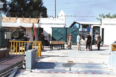昨日,在利比亚首都的黎波里美国大使馆,几名民兵在大使馆门口站岗。