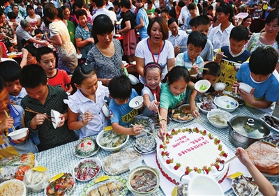 当日,安徽省合肥市观湖苑小区召集辖区内100个家庭共办“百家宴”,参与活动的每个家庭都拿出一道“看家菜”与邻里共享。社区居民品美味、唠家常,喜迎中秋佳节的到来。