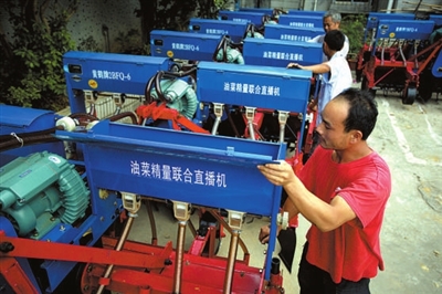 9月10日,咸安区油菜种植专业户在挑选油菜联合直播机。据介绍,区农机局组织购进价格1.9万元的油菜联合直播机30台。通过国家农机补贴和区政府叠加补贴,种植大户个人只需出资3000元即可购置一台。 通讯员 吴涛江元胜摄