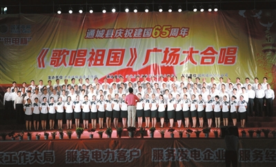 自9月下旬起,该县举行《歌唱祖国》大型合唱活动、群众广场舞展演、经济社会发展成就图片展、篮球赛等庆祝建国65周年系列活动,参加人数近万人。 特约记者 刘健平摄