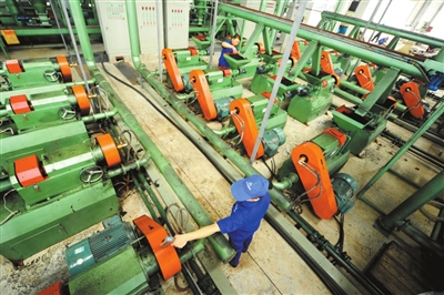 8日,嘉鱼华亿通橡胶有限公司的细碎车间内,操作工人正在对细碎机器运转温度进行测量。