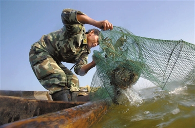 8日,咸安区向阳湖镇水产养殖专业户刘召荣正在斧头湖捕捞螃蟹。近日,咸安区斧头湖水产养殖区迎来螃蟹捕捞上市高峰期,目前已售出50多万公斤。据咸安区水产局预计,今年当地螃蟹销售收入有望达2100万元,较去年增长40%。