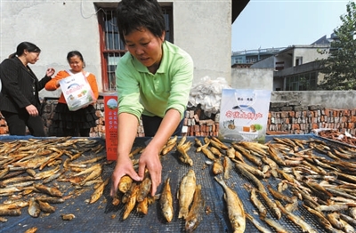 “打工回来的乡亲和一些游客临走时会捎上几斤,尝尝浓香的农家的味道。”个体户石银果的生意做得还不错,一天能销掉几十斤火烤鱼。