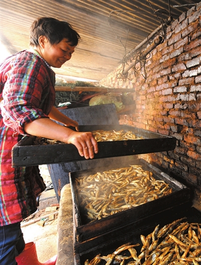 “一般5到9月是做火烤鱼的旺季,多的时候一天能加工两三百斤。一年算下来也能做个四五万斤吧。”徐必定说道。