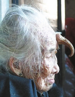 几年前,老人头上长出如蚂蝗痣大小的东西,以后逐渐生长长大,如今变成现在“犄角”的样子。老人说,“犄角”不痛不痒,没有什么感觉。