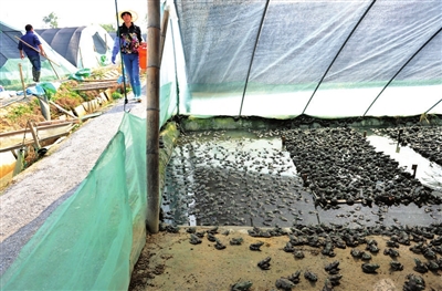 (图1)2日,位于崇阳县肖岭乡大堰村的崇阳祥业养殖专业合作社,泰国虎纹蛙长势良好。今年3月,该乡从浙江台州引进9户牛蛙养殖户,目前已建200个大棚养殖牛蛙,一个大棚可养殖近3万只蛙。