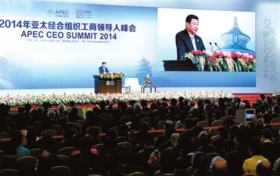 据新华社北京11月9日电 2014年亚太经合组织工商领导人峰会9日在北京国家会议中心举行,国家主席习近平出席开幕式并发表题为《谋求持久发展 共筑亚太梦想》的主旨演讲。习近平强调,当前中国经济呈现出新常态,将给中国带来新的发展机遇。我们将坚定不移把改革事业推向深入。中国发展将给亚太和世界带来巨大机会和利益。中国愿意同本地区各国携手实现亚太美好梦想。