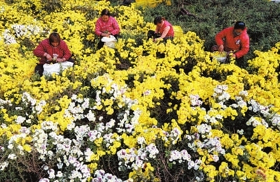 昨日,河南省焦作市温县南张羌镇朱家庄村的农民在采摘怀菊花。