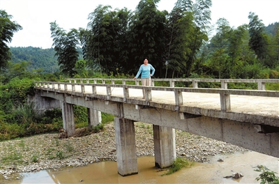 在去往石城镇长坪村的路上,有一座水泥桥,当地村民告诉记者,这座桥叫陈红岭桥,原来的桥是用两块平行的水泥预制板搭建而成的简易桥,只能两轮摩托车和自行车勉强通过。稍有不慎,车轮深陷两板之间的缝隙中,经常会发生摔伤或翻坠河事故。