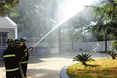 近日,高铁岭镇专职消防队进行了首次实战演练。