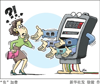 新华社记者调查发现,在关涉民生的水、电、汽油价格中,“附加费”现象普遍存在,且各地标准不同,项目易增难减。按2013年全国用电量初步估算,仅电价“附加费”一年可达2000多亿元,其中居民生活用电的“附加费”就达270多亿元。这些“附加费”到底该不该收?它们最终流向了哪里? 徐骏作