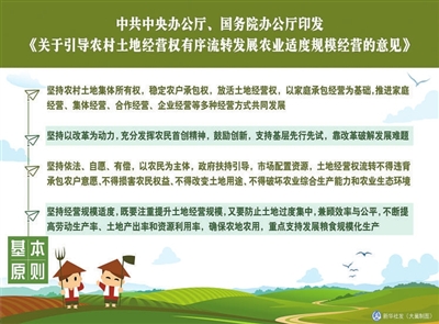 针对种种隐忧,意见明确提出,坚持农村土地集体所有权、稳定农户承包权、放活土地经营权。这样一来,具有土地承包权的农民不但可以安心地离开土地进城务工,还可以享受到土地流转带来的经济效益。“既放活了土地的经营权,又保障了承包农户的权利。”农业部部长韩长赋说。