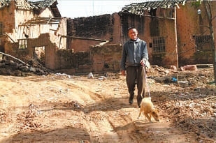 余金林巡逻的地方,是成片坍圮的土房,散落的石磨。“已经坚持9年了。”余金林今年62岁,他说会坚持到自己动不了的那一天。