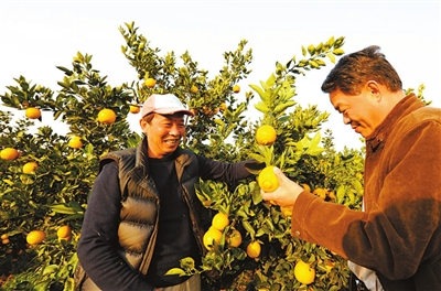 11月22日,位于珍湖湖畔的嘉鱼县陆溪镇花果山林果场,果农正在采摘脐橙,一片丰收景象。据介绍,该果园336亩,年产脐橙30多万斤,日平均销售脐橙5000斤,主要销往武汉、赤壁、洪湖、湖南等地。通讯员 雷平摄