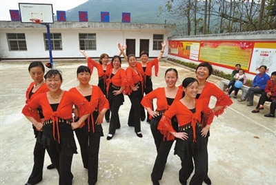 20日,崇阳县桂花泉镇桂花社区的一支农村文艺队在桂花广场编排舞蹈。