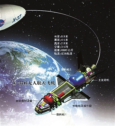 近两年来,美国的一架无人驾驶的航天飞机一直在环绕地球飞行,执行着绝密的任务。这架飞机叫X-37B轨道试验飞行器。