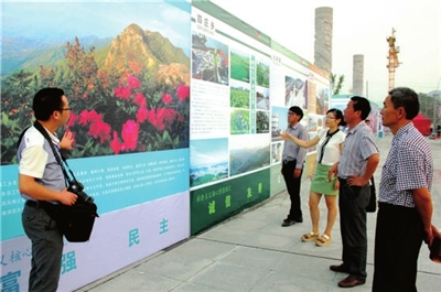 近日,通城经济社会发展成果图片展在银山广场展出,全方位展现出通城县近年来发展的全貌,吸引了大批市民驻足观看。 特约记者 刘健平摄