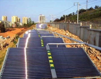 由湖北江成环境工程技术有限公司提供设计、安装。日产热水12T,集热面积198㎡,产生经济总收益185.4万元,年节约煤量(TCE)23.76吨,年减排CO260.98吨。获得咸宁市可再生能源专项补贴9.9万元。