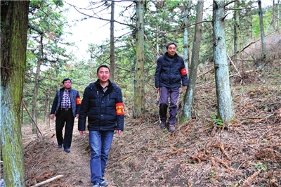 连日来,通城县黄龙林场近百名防火队员在山林巡视。该场将防火线加宽到50米,栽植防火林带。他们还在天岳关、长埚、狂风坳等主要路口设置禁令牌,佩戴防火袖章值班,对进山人员进行登记,防止携带一切火种进入林区。 特约记者 刘健平摄