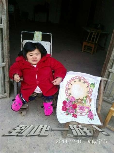 因为个子小,一般的轮椅她没法用,只能由家人抱来抱去。六年前,家里为她量身定制了把轮椅,如今,她生活已能基本自理,还能推着轮椅到邻居家串串门。