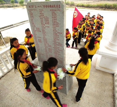9日,咸安区组织学生来到高桥镇“九门万318惨案”纪念亭和罹难者合葬墓,公祭罹难同胞,让学生们牢记历史,勿忘国难。1939年3月18日,日寇在咸宁大屋万、万家山和畈背万八个万姓庄门残杀百姓,制造112人罹难的屠村惨案。 通讯员 吴涛 黄念 吴芳摄