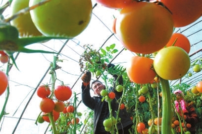 昨日,甘肃省敦煌市月牙泉镇兰州村农民王生春在温室中为西红柿剪枝疏叶。元旦临近,该地农民群众抢抓农时,加强设施大棚蔬菜的田间管理,不断丰富节日市场的“菜篮子”。 据新华社