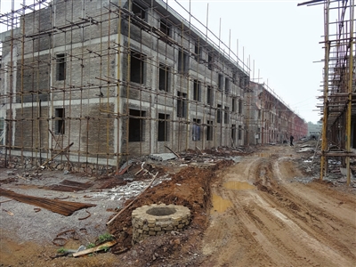 图为大畈镇板桥白鹭新村首期封顶的50户房屋,目前已完成三通一平,正在配套完善基础设施,预计今年5月移民可住上新房。 通讯员 周汉超摄