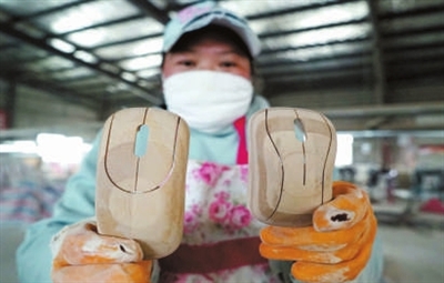 昨日,江西省奔步科技公司工人展示制作中的竹鼠标。近年来,江西省铜鼓县出台相关激励政策,鼓励毛竹加工企业进行产品创新,生产的竹键盘、竹鼠标、竹音箱、竹摄像头等产品凭借“以竹代塑”的环保理念和过硬的质量畅销海外。 据新华社