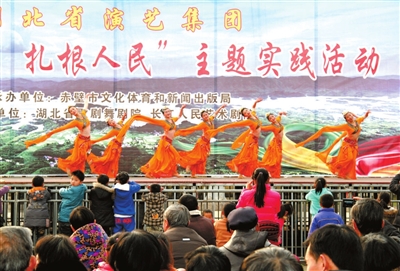 1月10日,由赤壁市文体新局承办的“深入生活,扎根人民”主题实践活动文艺演出在人民广场上演。省歌剧舞剧院、长江人民艺术剧院的演员们倾情献艺,为全市人民带来一场丰富的文化盛宴。 通讯员 江桦 摄