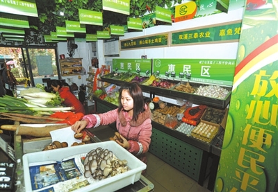 截至目前,市区已经建成蔬菜直销店50个,蔬菜平价店10个,大大方便了市民。