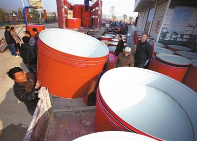 8日,咸安区横沟桥镇孙田村的村民正在挑选防潮粮仓。去年以来,咸安区农机局购买了6000多台粮仓、3000多台潜水泵等小农机具,通过购机补贴的形式在大幕、横沟、高桥等8个乡村进行发放。