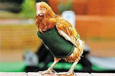 日前,英国东苏塞克斯地区的一家动物庇护所推出奇思妙想,动物爱好者为脱毛的小鸡制作了“针织套衫”帮助它们御寒。