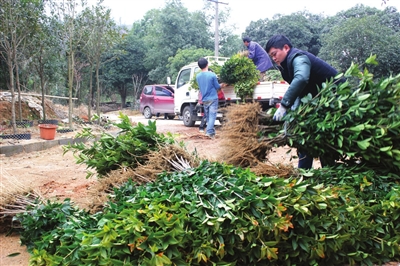 图为21日,鄂州顾客通过网络与桂花产业支部建立长期合作伙伴,前期采购桂花苗14000株。