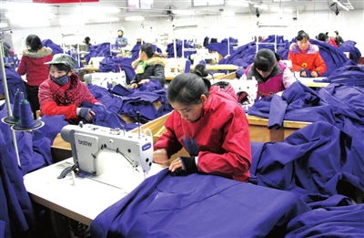 1月26日,赤壁市绘锦服饰有限公司生产车间内一派繁忙景象,工人们正埋头赶制订单。