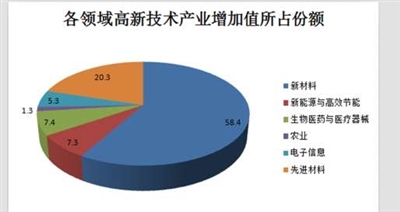 其中,传统优势领域新材料的总产值超过百亿元,达到134.9亿元,实现增加值37.2亿元,占全市58.4%;先进制造领域的总产值48.5亿元,实现增加值12.9亿元,占全市20.3%。