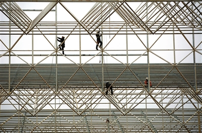 1月23日,咸安区横沟桥镇,总投资7亿元的综合自然能环岛发电项目正在进行太阳能发电板支架施工。