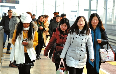 放眼望去,乘客们步履匆忙,回家的急切心情溢于言表,即将和亲人相聚的喜悦也写在脸上。