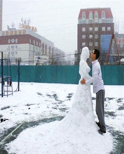 其一,照片中的“雪人”,神态各异,栩栩如生。再加上人的互动,更是情趣盎然。看后,忍不住想笑。真逗!