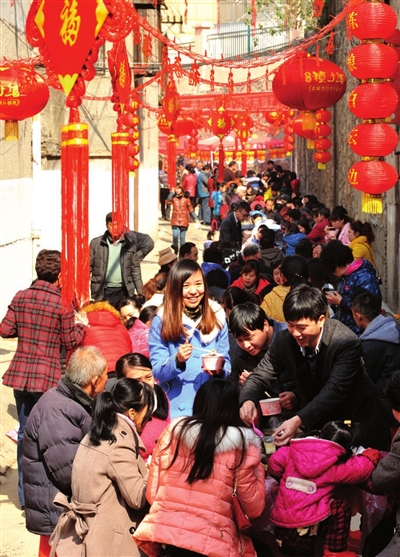 12日,农历小年。咸安区永安街道办事处南山社区余家垅小区张灯结彩,亲情洋溢。