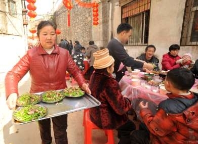 中午12点,在温州做海产生意的社区居民张崇武为每一桌端上一盘海鲜,其他居民们也纷纷端出自家的拿手好菜,相互品尝,互祝问候,场面十分热闹。居民们感叹:“社区百家宴,像是相亲相爱的一家人,让人感受到大家庭的温暖。”