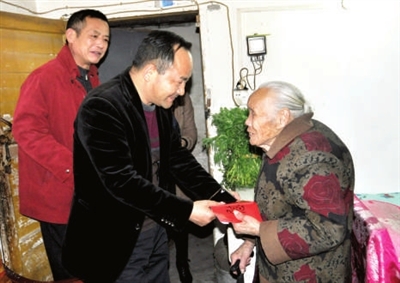 春节期间,赤壁市民政局走访慰问全市百岁老人,为他们送上新春祝福,共发放慰问金8万多元。目前,赤壁市百岁老人有26人,其中最年长的110岁。通讯员 吴孝清摄